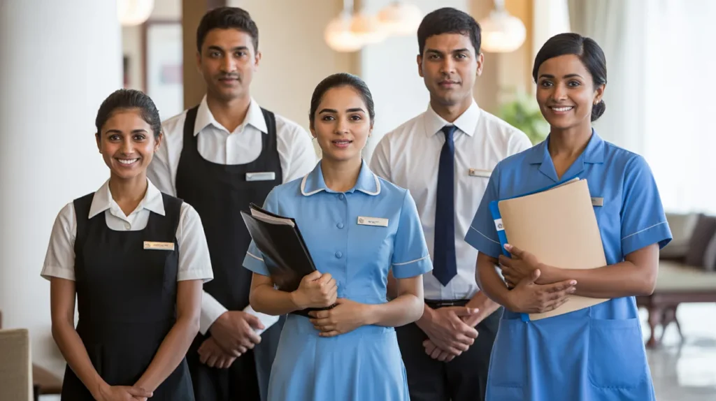 Trained housekeeping professionals for room cleaning, linen handling, guest assistance, and maintaining hygiene standards.
